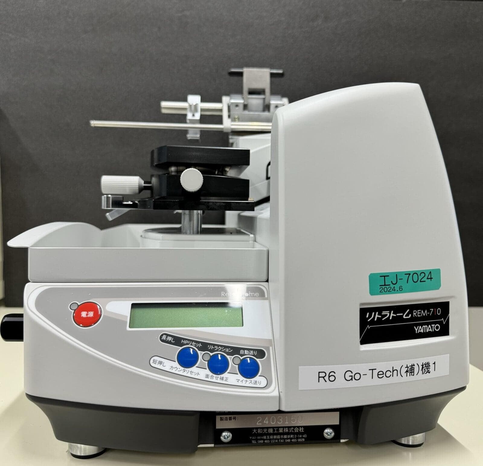 導入したミクロトームは、大和光機製の高性能ミクロトーム(リトラトーム)REM-710です。この機種は、手動と電動のメリットを融合して、さらなる使いやすさを実現した滑走式ミクロトームだそうです。