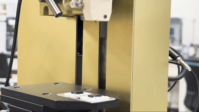 本装置は、金属製の針に200-550℃をかけ、アクチュエータにより上下移動させる装置です。この高温の針を試料の特定部位に瞬間的に接触させることで(20-1000 ms)、局所的なサンプリングが可能です。これにより、試料全体を損傷することなく、分析部のみから成分を抽出し、ChemZoに送り、イオン化して分析します。